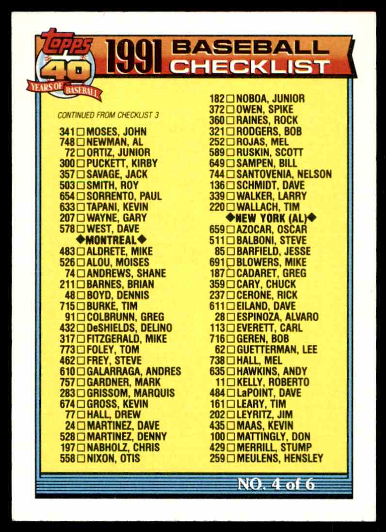 1991 Topps Baseball Checklist Set Info Boxes Reviews More